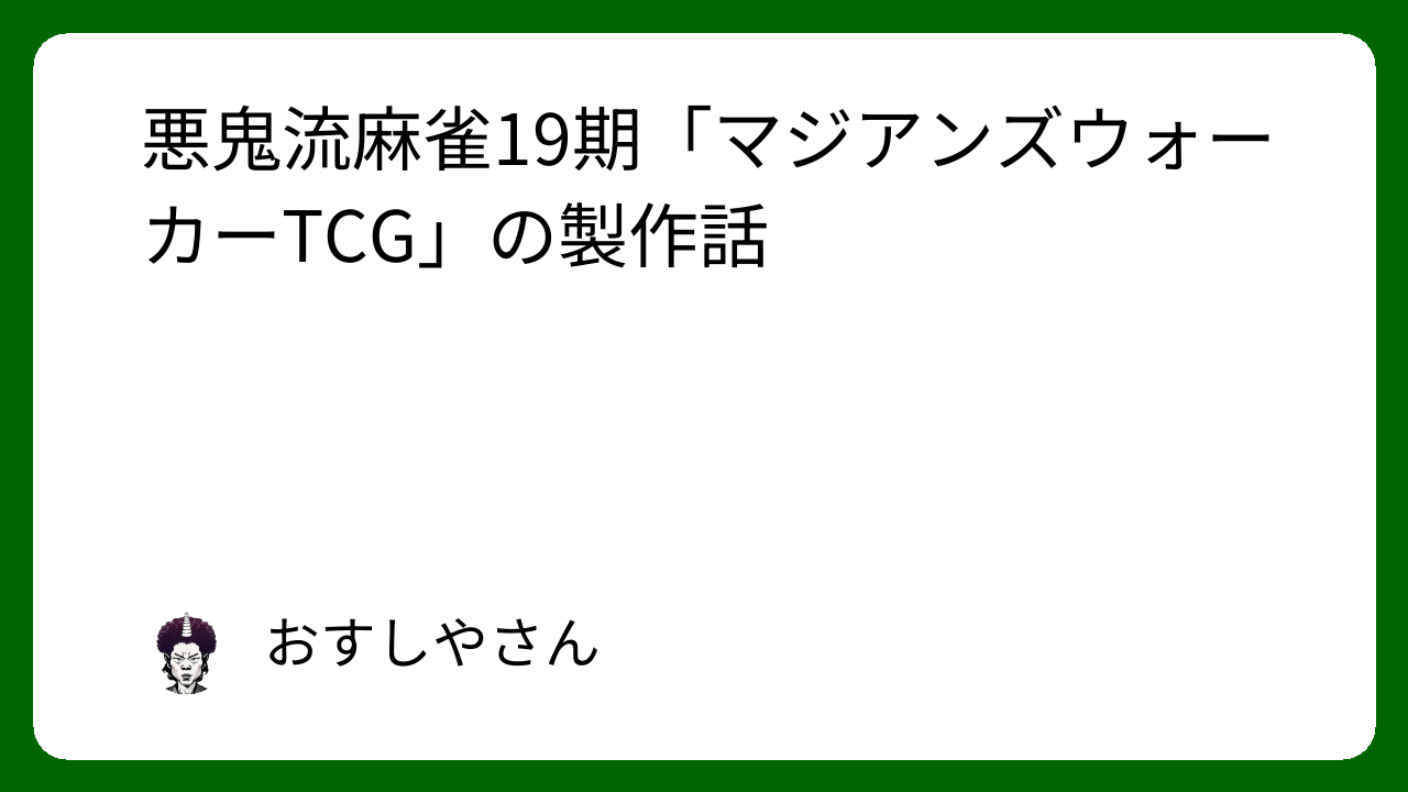 今回の「マジアンズウォーカー」のテーマは、TCGと麻雀の融合だ。