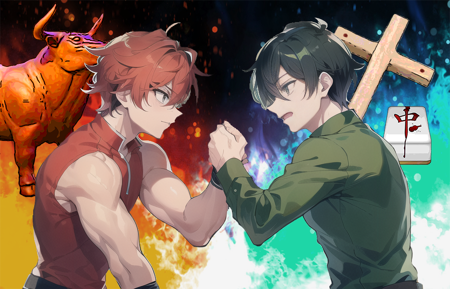 もしくは単純に順位点を10:0:-5:-15のように全体-10程度のマイルドにするのも良かったかもしれない。実際に半荘で順位点チップが20枚を超えたことは少なく、バランス的には悪かった可能性がある。想定していたよりもドラ爆方向にならず、コンビ同士の差し込みで局が淡々と進むようなシーンが多かったからだ。